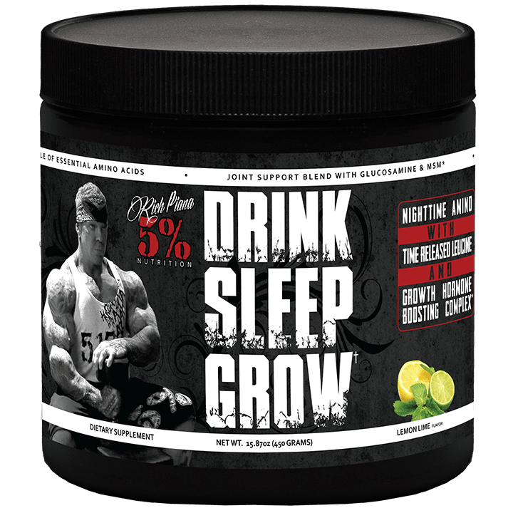 Firma suplementacyjna Rich Piana 5% Nutrition wypuściła na rynek kolejny produkt z linii odpowiadającej za regenerację. Mamy przyjemność przedstawić Wam formułę o bardzo wymownej nazwie – Drink Sleep Grow (pij, śpij, rośnij), która, podobnie jak jej poprzedniczka Knocked The F*ck Out, ma na celu wsparcie regeneracji w trakcie snu.