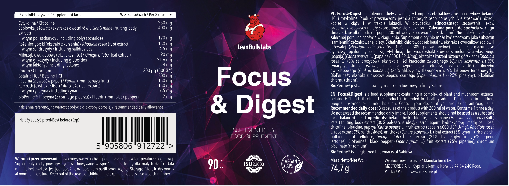 Zestaw LeanBullsLabs: Focus & Digest + NeuroRecovery