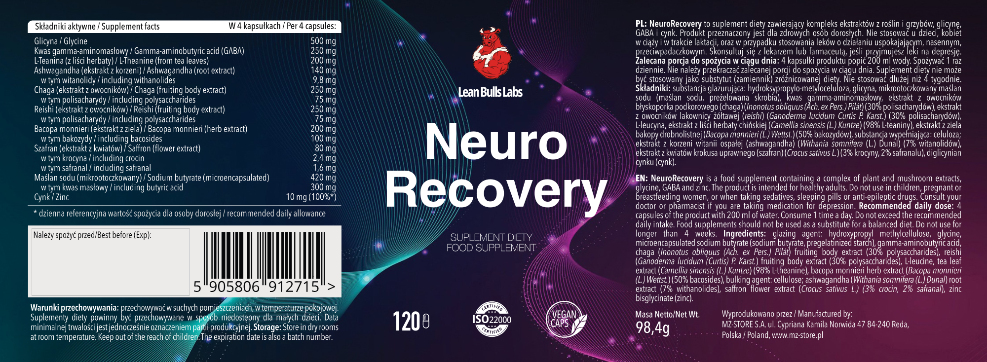 NeuroRecovery to suplement diety łączący ekstrakty z roślin i grzybów, aminokwasy, maślan sodu oraz cynk. Produkt przeznaczony jest do stosowania wieczorem jako element codziennej rutyny osób aktywnych.